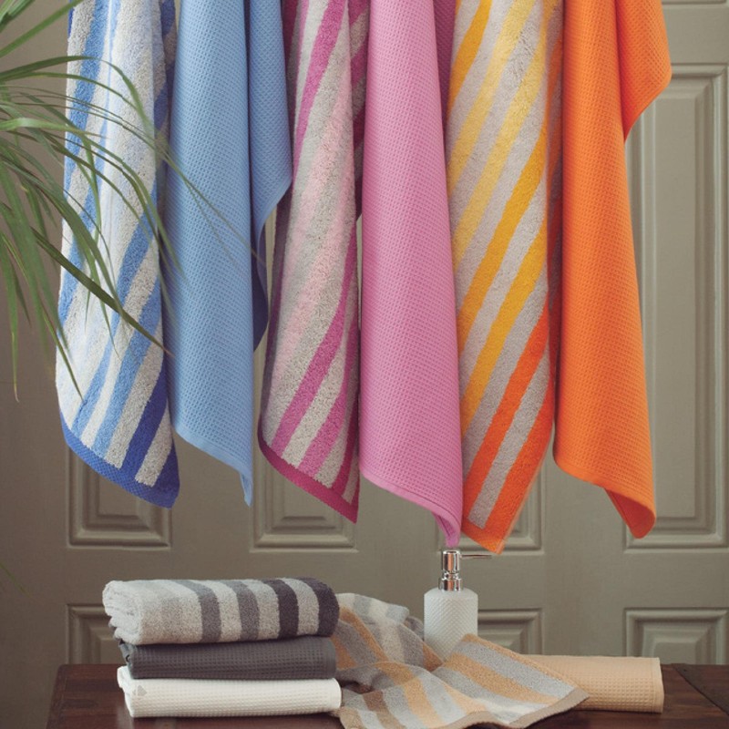 - Schöne Qualität aus weichem und flauschigem Frottee mit Jacquard-Streifen.