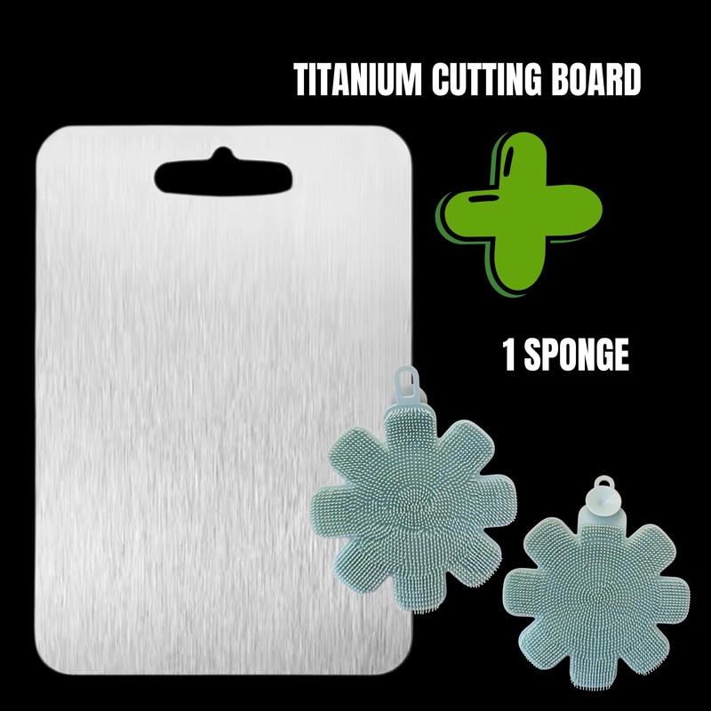 - 【Includes Sponge】: Our Titanium Board includes a sponge for washing other kitchen utensils, making it the ideal complement to our Pure Titanium Cutting Board