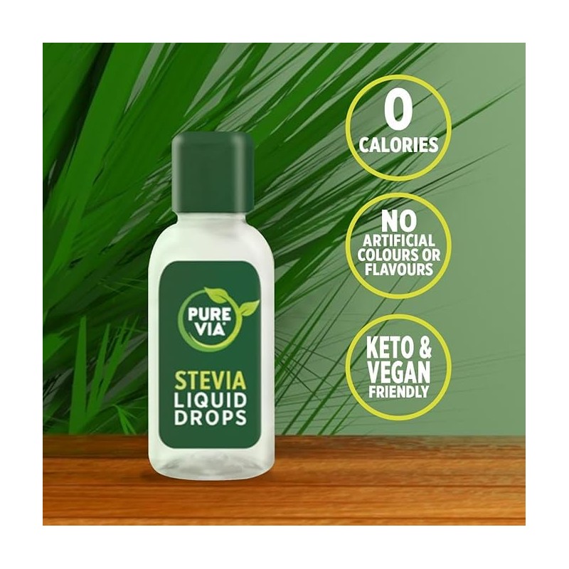 - GREAT VALUE DOUBLE PACK – Each bottle contains 366 servings (equivalent to 1.5kg of sugar). Use 3 drops of Pure Via Stevia Liquid Drops to get the same sweetness as 1 teaspoon of sugar with none of the calories.