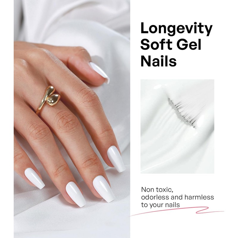 - 【Soft Gel Press on Nails Medium】GJZEZ soft gel pure white fake nails made from a softer & resilient gel-based material. They are designed to be durable yet flexible, offering a more natural and comfortable fit. Our press on nails for women is a quick and mess-free solution for achieving shiny, chip-free, flawless manicures in minutes.