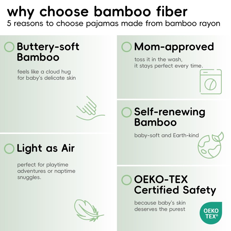 - COMFORTABLE PREMIUM PAJAMAS - Our pajamas set is made with 95% viscose from bamboo and 5% spandex. The fabric is ultra-soft, smooth and 4-way stretch, adorable tools designs, absorbs sweat quickly, drives dampness away, provides baby ultimate comfort, perfect for kid's tender skin.