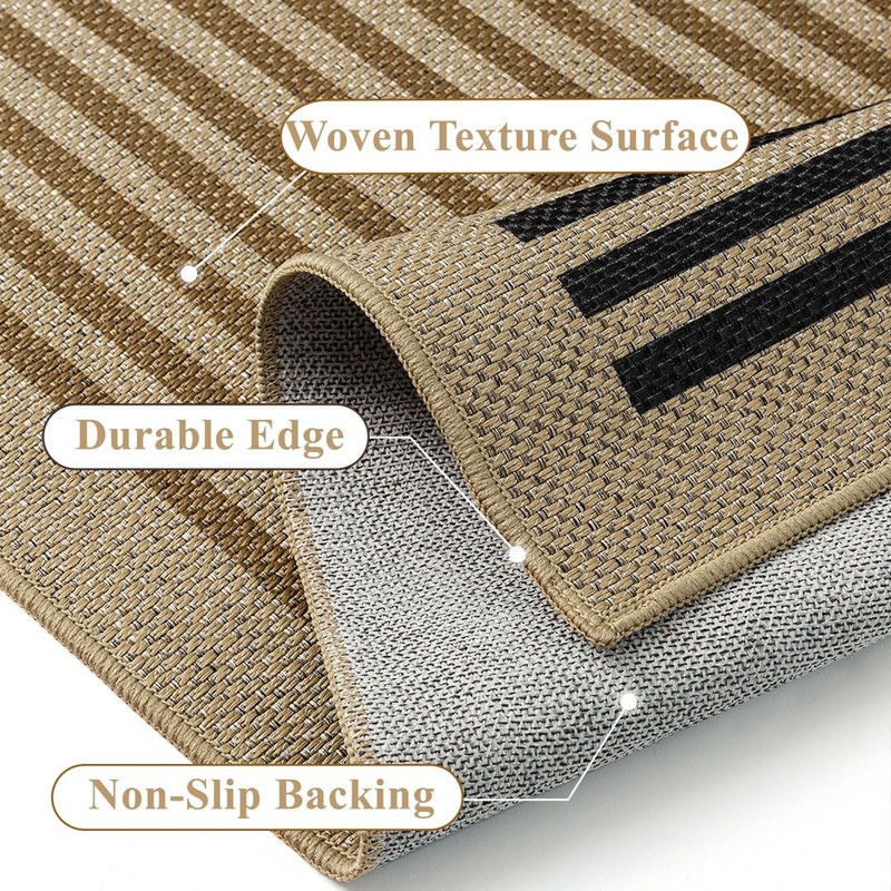 PureCozy 2x3 Modern Geometric Easy Jute Kitchen Front Doormat Non Slip Washable Neutral Carpet Non Shedding Low Pile Black Floor Area Rug for Farmhouse Entryway Porch Doorway
