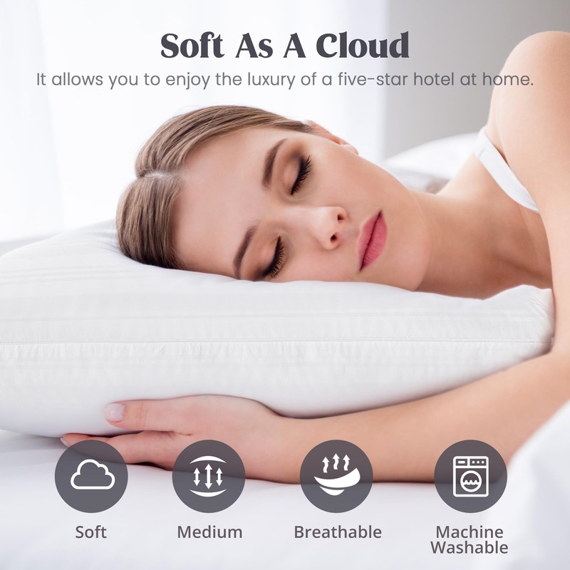 • Softer & More Comfortable: The soft feather down pillow is filled with 90% goose feathers and 10% goose down, so it's softer, fluffier, more breathable and more supportive than any pillow you've ever used. -Whether you're lying on your back, side, or stomach, our pillows have you covered! Let you sink into a soft and cozy cloud for better relaxation and improved sleep at all times!