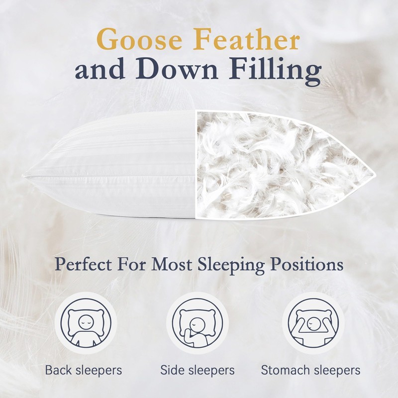 - FEATHER and DOWN BLEND - Filled with 95% goose feathers and 5% goose down, these pillows offer a luxurious balance of softness and support for a restful, cloud-like sleep experience.