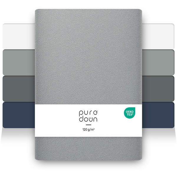 puredown Set of 2 Premium Fitted Sheets 140 x 200 cm Microfibre Bed Sheet for Mattresses up to 25 cm, Thick Comfortable Breathable Fitted Sheets Bed Linen, Oeko-Tex Certified, Light Grey