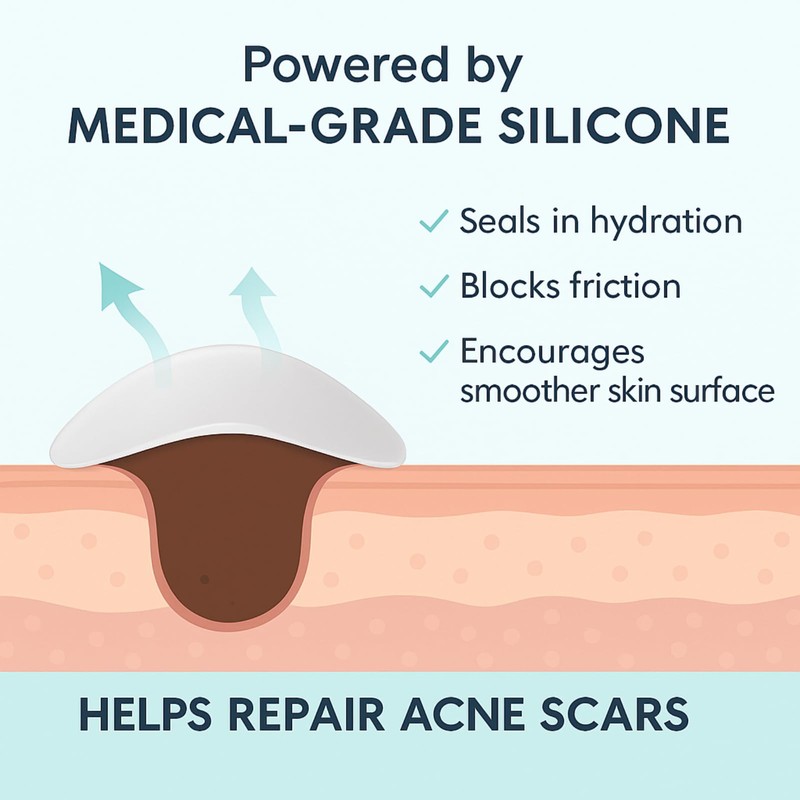 - 5. 72 Dots in 2 Sizes Multiple sizes for targeted use on cheeks, jawline, forehead, or chin suitable for all stages of post-acne recovery.