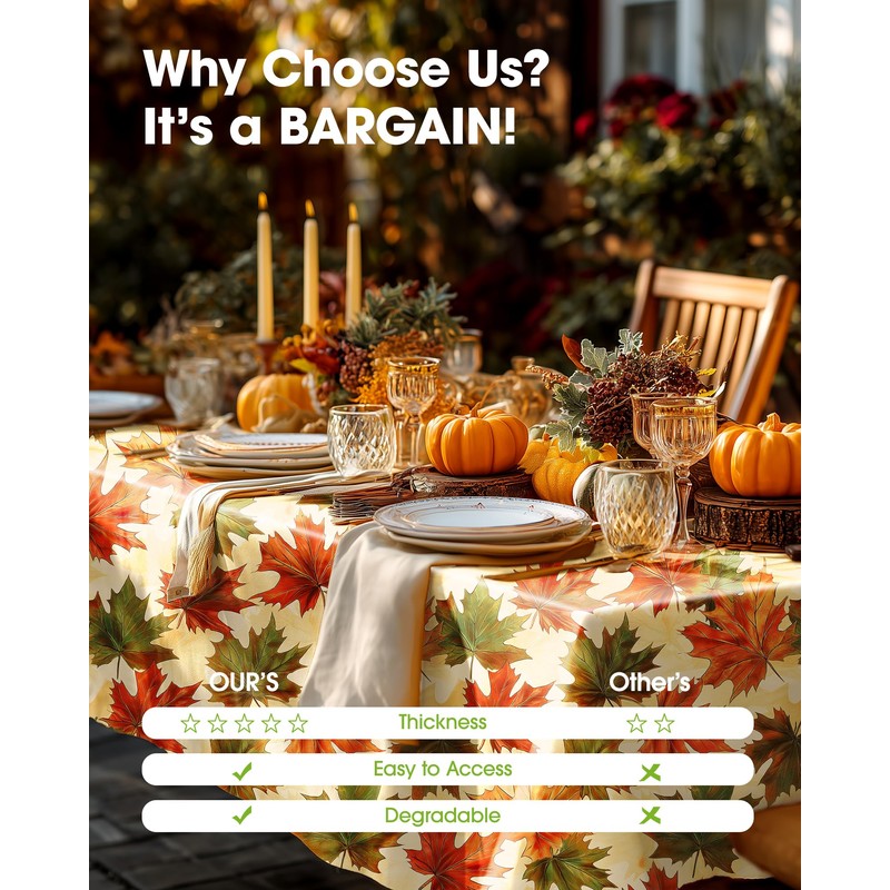 Pureegg Plastic Table Cloth Disposable 8 Pack, 54 x 108 Inch Table Cloths, Thanksgiving Decorations, Harvest Party, Fall Tablecloths, Rectangle Tables, Leakproof & Sturdy, Autumn Maple