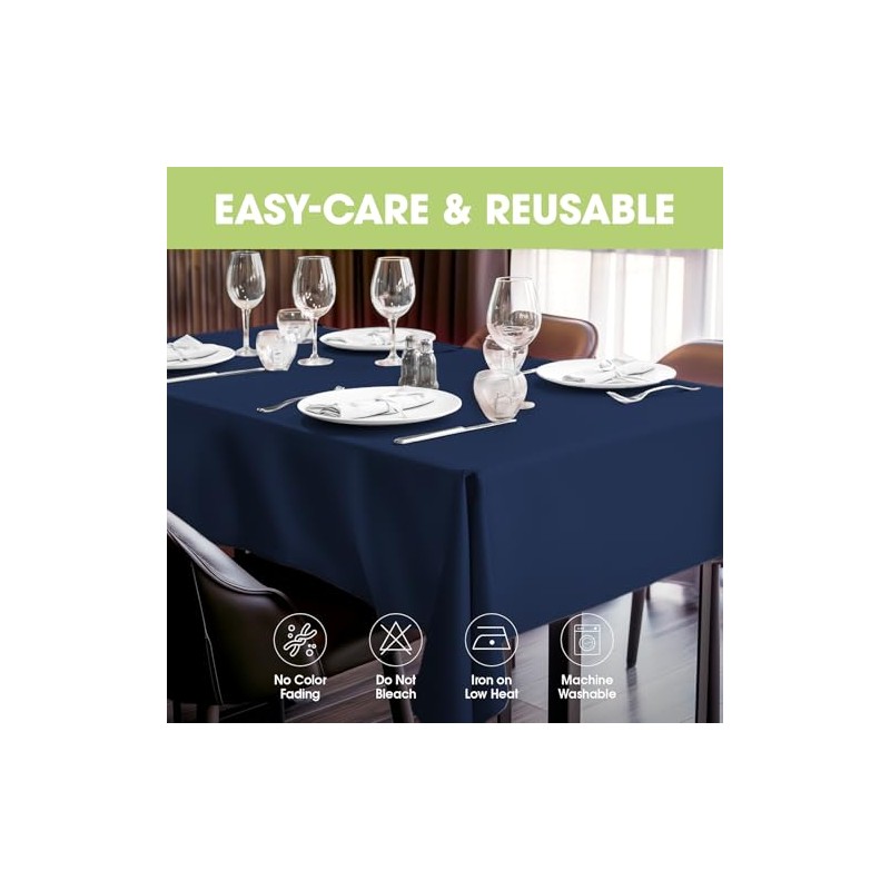 - ECONOMICAL OPTION: Unlike disposable plastic table cloth, this polyester tablecloth is reusable. You don't have to buy a new one every time you need it. No need to worry about fading, our product will maintain its fresh appearance even with frequent use. The incredible durability makes it highly cost-effective. NOTE: Don't bleach the tablecloth.