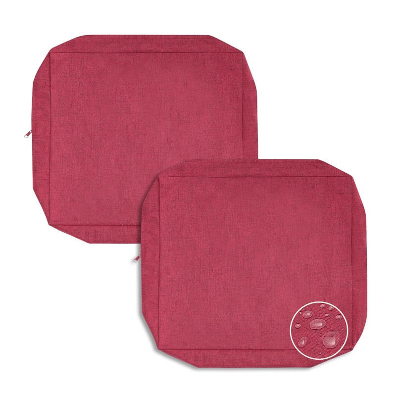 PureFit Waterproof Outdoor Cushion Covers Replacement for Patio Furniture Chair Seat Cushion Covers 22x22 inch for Outdoor Furniture Garden Backyard with Zipper, 2 Pack SLIPCOVERS ONLY, Red
