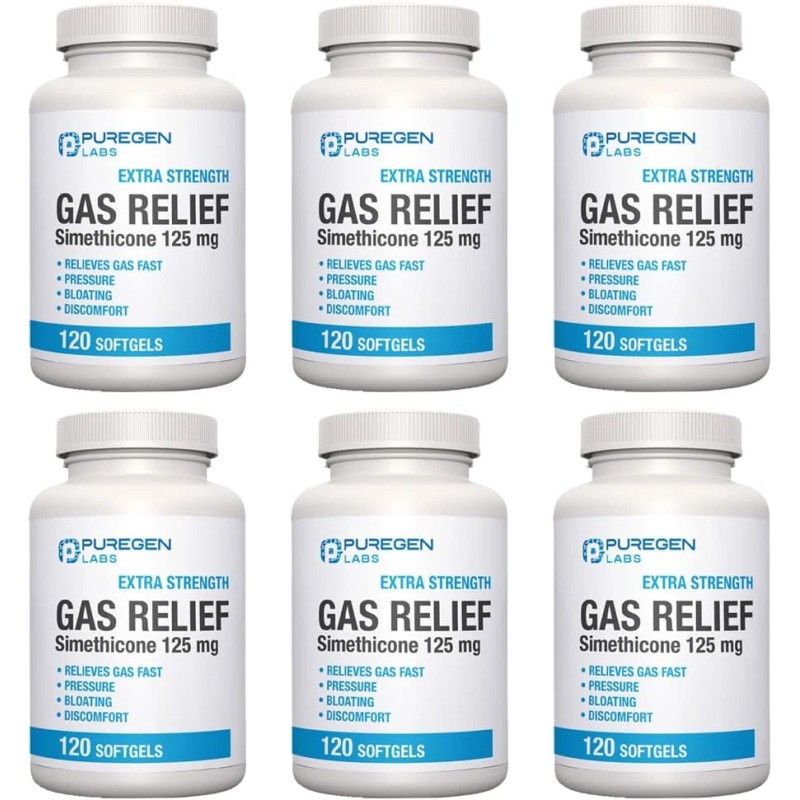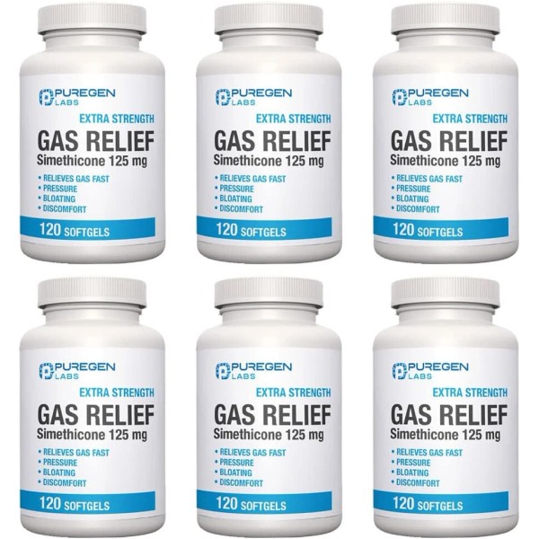 Puregen Gas Relief Simethicone 125 mg 120 Softgels Pack of 6