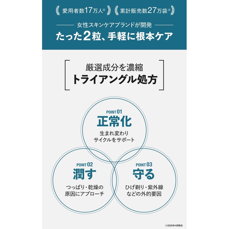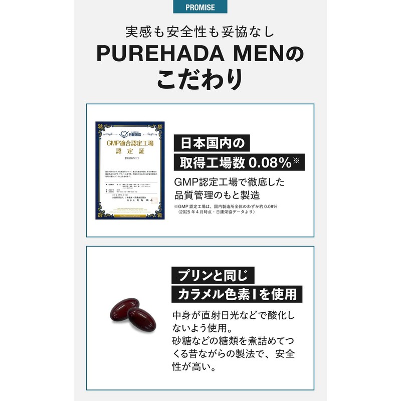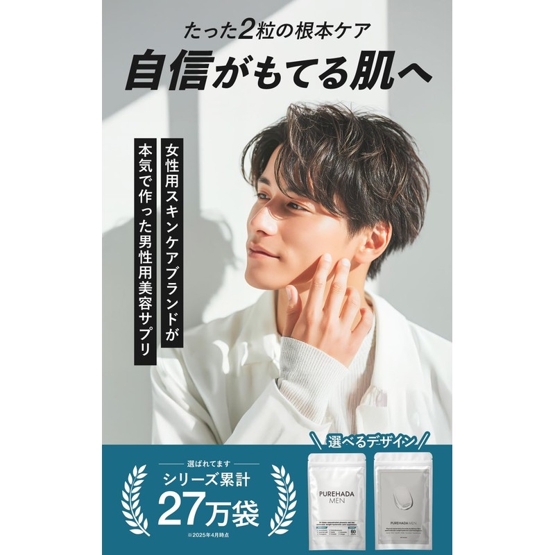 - 特徴1|女性ブランドが本気で作ったメンズ美容サプリ - ひげ剃りによる肌荒れ、乾燥、ツヤ不足など男性の悩みに応える、インナーケアサプリメント -