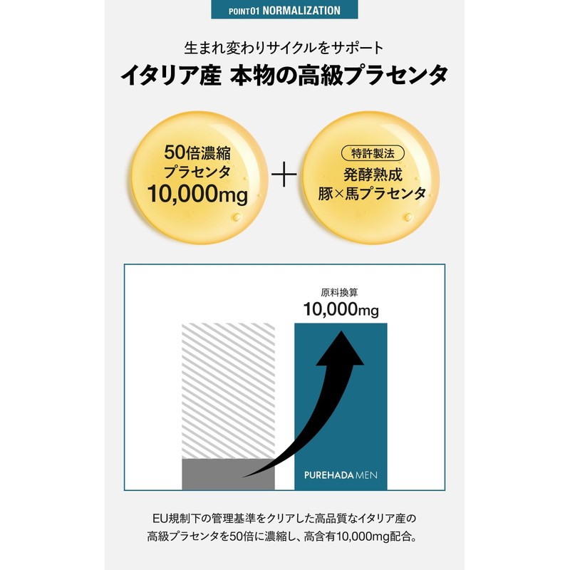 - 特徴4|50倍濃縮プラセンタ10,000mg+超低分子ヒアルロン酸など厳選9成分配合 - 肌の活性化・潤い・外的ダメージ対策をトータルサポートする処方。 -
