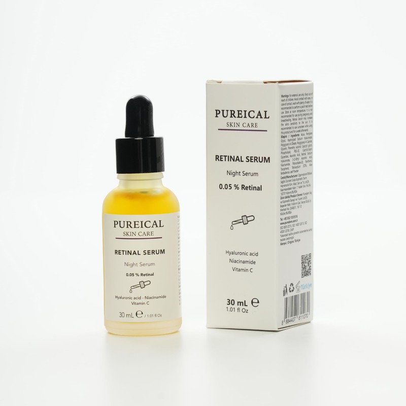 Pureical Retinal Serum, niacinamide, ethyl ascorbic acid, leke karşıtı,%0,05 retinal gece serumu 30 mL