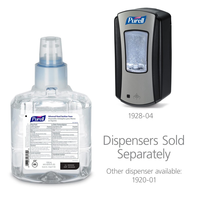 - Case Pack Includes: 2 - 1200 mL PURELL Advanced Instant Hand Sanitizer Foam Refill. Each 1200 mL refill holds up to 1300 uses. Compatible with LTX-12 Dispensers (Dispensers sold separately)