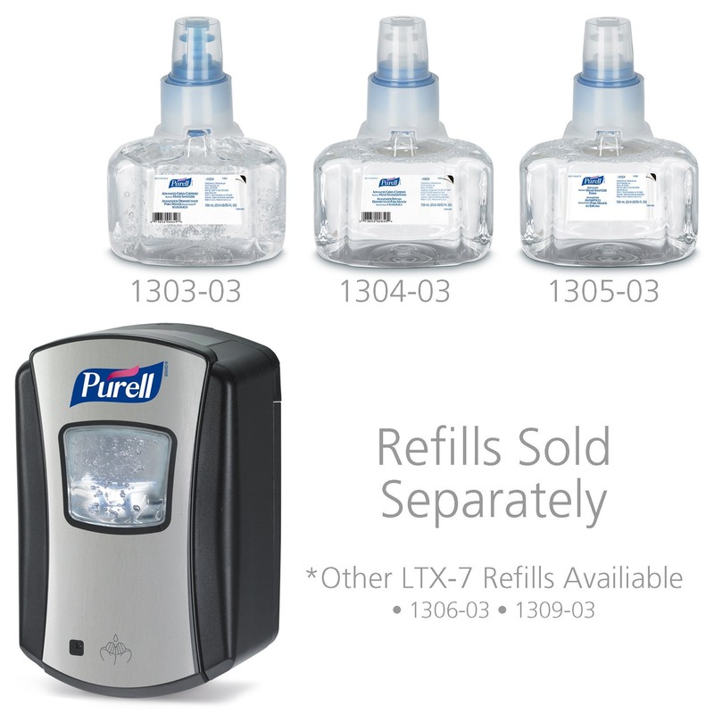 - Case Includes: 1- 700 mL PURELL Hand Sanitizer LTX 7 Dispenser compatible with 1303-03, 1304-03, and 1305-03 refills. Refills sold separately. Requires 4 D-cell batteries (not included)