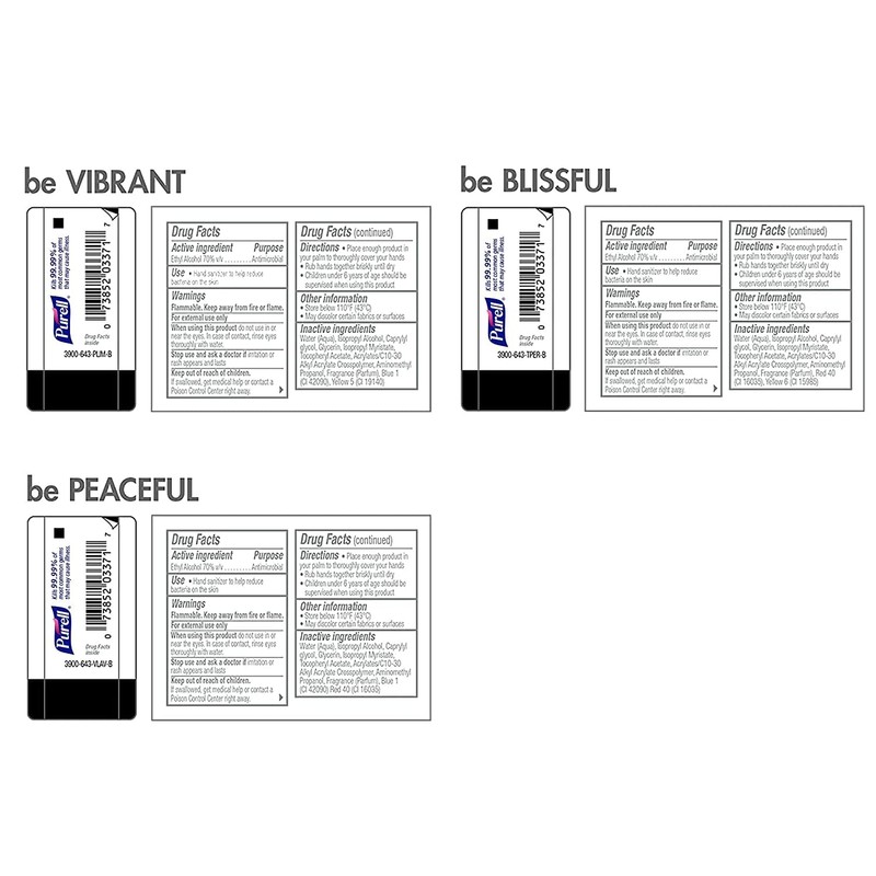 You dont want to think about it, but its true C illness-causing germs are everywhere C at home, at work, and when youre out and about. We know that life moves fast, and that washing your hands with soap and water is not always an option. Using PURELL hand sanitizer throughout the day conveniently helps eliminate germs. PURELL hand sanitizer is the No. 1 brand most used and trusted by hospitals and is proven to kill 99. 99 percent of most common germs that can cause illness, without damaging skin. Since PURELL Advanced Hand Sanitizer Refreshing Gel outperforms other sanitizers ounce-for-ounce, you get more germ-fighting power with every bottle. PURELL hand sanitizer is formulated to be gentle on skin with four conditioners and is clinically proven to maintain skin health. It is free of harsh preservatives, and does not contain dye, triclosan, parabens, or phthalates. Place this travel-sized 1 fl oz bottle in your purse, gym bag, or diaper bag. Reach for the PURELL bottle when you need to kill germs, refresh, or clean-up in a hurry. PURELL hand sanitizer is free of triclosan and will not create supergerms, as the alcohol formulation kills germs and evaporates quickly, so germs dont become resistant. Box includes: 12C 1 fl oz PURELL Advanced Hand Sanitizer Refreshing Gel Bottles. Please note: Due to high demand, varieties may vary. Case packs may include other varieties of PURELL Advanced Hand Sanitizer other than Mood Essentials due to production. GOJO Industries, a purpose-driven Family Enterprise, invented the PURELL brand 30 years ago.