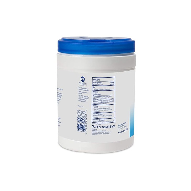 Eliminate germs and show you care about the well-being of your workforce with these fresh citrus scent PURELL sanitizing wipes. Designed to kill 99.99 percent of germs on contact, these sanitizing wipes are ideal for your office kitchen, break room, or cubicle. PURELL products project a quality image that extends to your entire operation. In a survey, 84 percent of people were satisfied with the overall cleanliness of a facility with PURELL products. Antimicrobial premoistened hand wipes with 0.13 percent benzalkonium chloride to help reduce the number of germs on hands and remove light soils. The wipes are textured to help them easily wipe away spills, while the fresh citrus scent leaves behind a pleasing fragrance. This canister contains 270 wipes, ideal for high-traffic areas. You can use them anytime for quick cleanup. This case pack includes six 270-count Hand Sanitizing Wipes. Compatible with PURELL wipe dispenser, stations and brackets (9001-01, 9014-01, 9010-DS, 9118-DSLV, 9115-DS1C) sold separately. GOJO Industries, a purpose-driven Family Enterprise, invented the PURELL brand and the hand sanitizer category 30 years ago. We are committed to using the best science available to make the world a better place. GOJO is a member of the Responsible Flushing Alliance and recommends that users do not flush wipes.