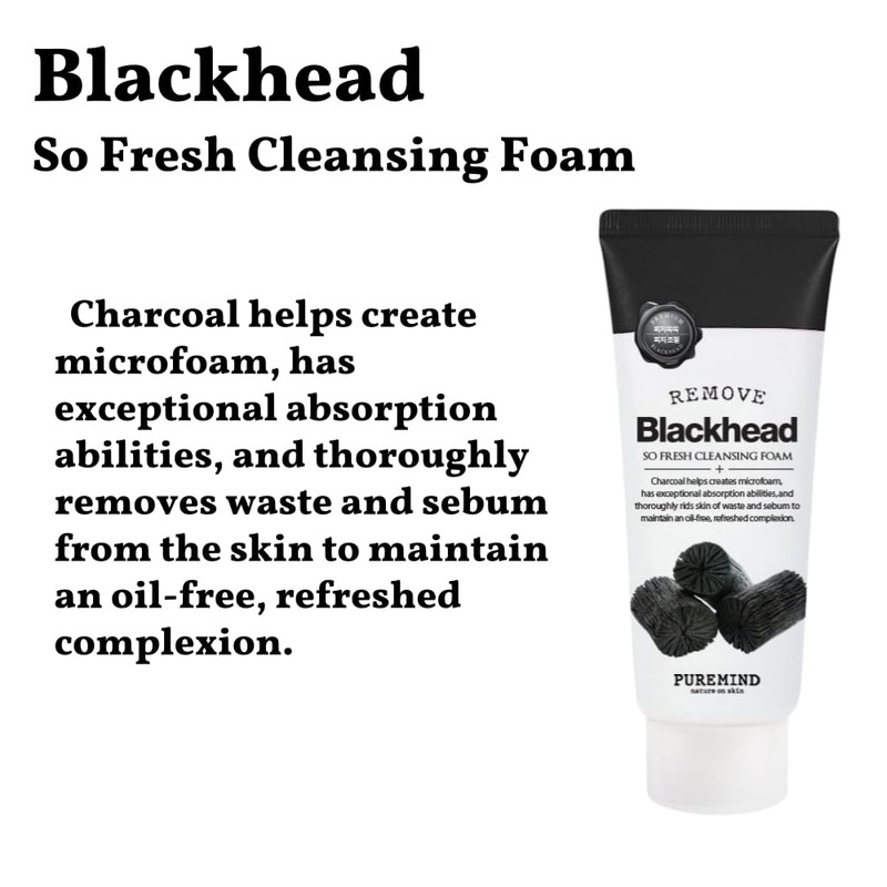- Blackhead: Charcoal helps create microfoam, has exceptional absorption abilities, and thoroughly removes waste and sebum from the skin to maintain an oil-free, refreshed complexion