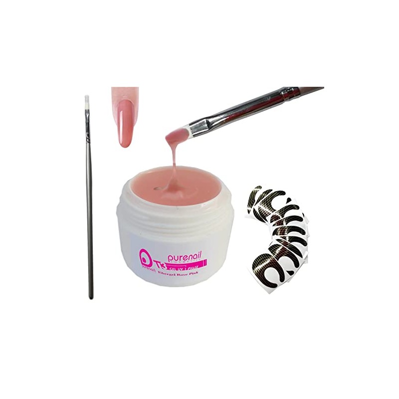Purenail Fibergel 1-phase gel pink 15 ml + 1 gel brush + 10 extensions chaboles, easy modelling, artificial nails, nail clamps, gel construction, shaping, UV and LED use
