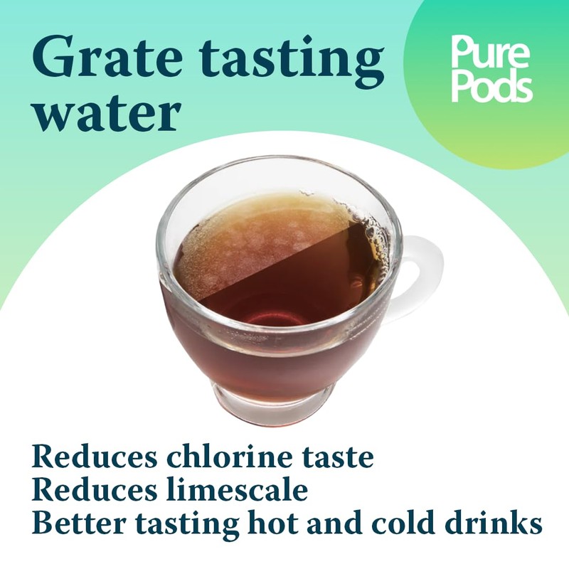 - FRESH WATER - Our water filters provide great tasting water, Activated Carbon reduces chlorine and impurities which improves taste and appearance of food & drinks. PurePods not only provide filtered, fresh tasting water but the Ion Exchange Spheres remove pollutants including microplastics and heavy metals such as lead, and reduce limescale for appliance protection
