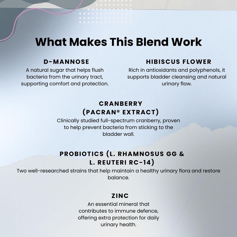• 💧 Flushing Support – D-Mannose helps naturally flush and cleanse the urinary tract.