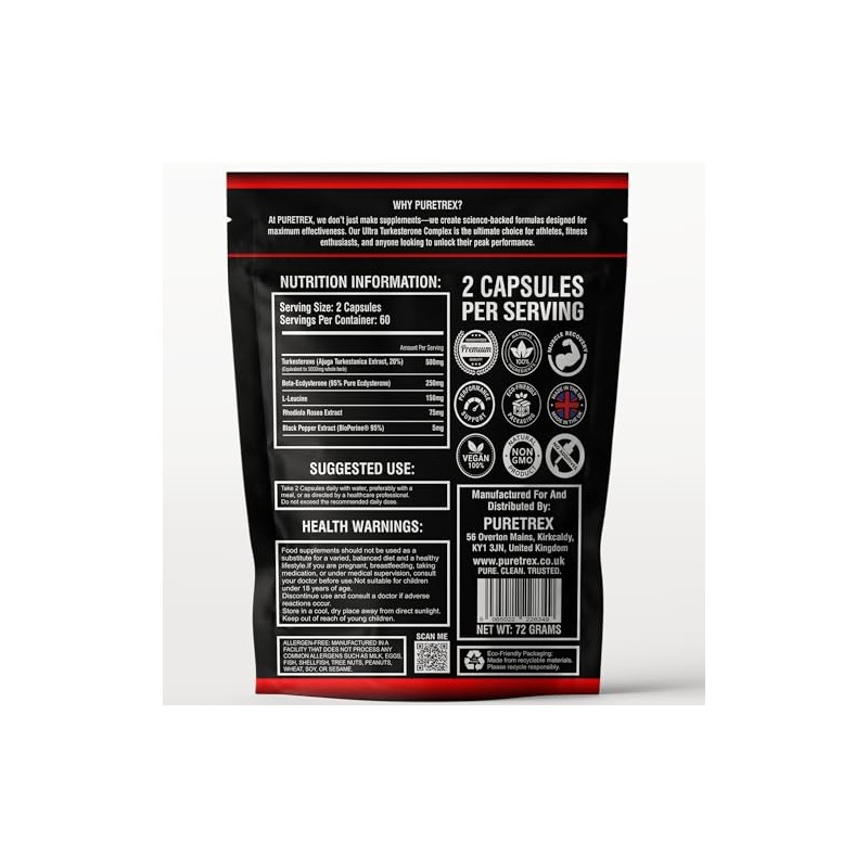 Puretrex Ultra Turkesterone Complex 5000mg – 120 Capsules – with Beta-Ecdysterone, L-Leucine, Rhodiola Rosea & BioPerine® – Natural Strength, Muscle Growth & Performance Support Supplement