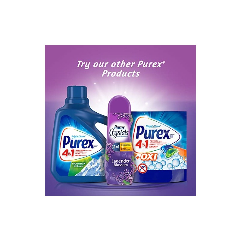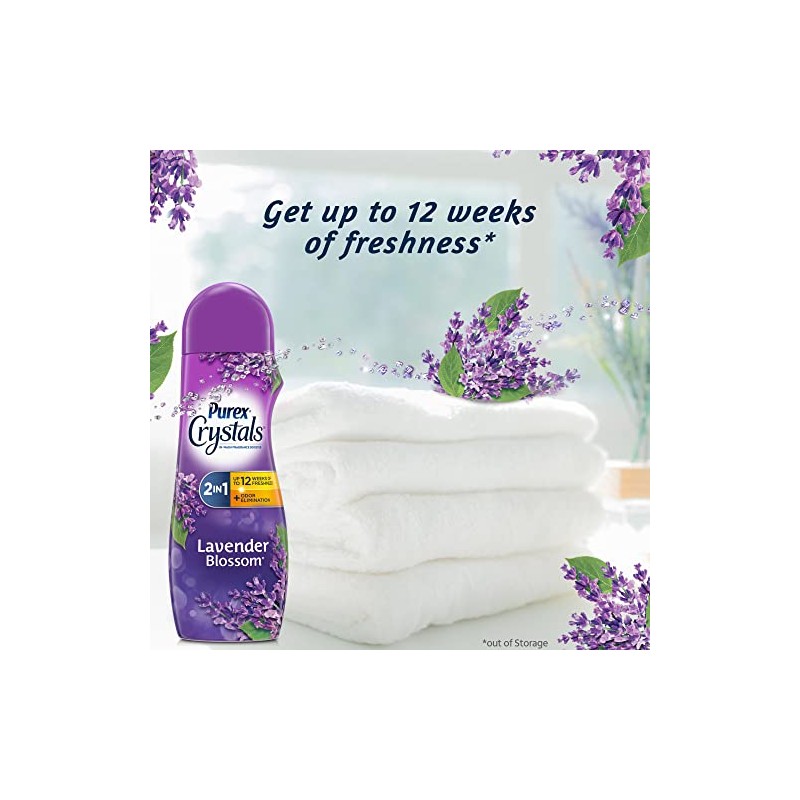 Wander through colorful, sun-lit fields of lavender and give your laundry long-lasting, just-washed freshness with Purex Crystals Lavender Blossom scent booster. Purex Crystals infuses your clothes with an extraordinary freshness that puts the finishing touch on your laundry and makes everyday a little more rewarding. With the exciting variety of fragrances Purex Crystals offers, it's easy to find a fragrance to match every laundry occasion. Whether it's a relaxing freshness for your sheets or a more stimulating scent for you and your family's activewear, Purex Crystals has you covered. Have fun and try them all! This package includes four 21-ounce bottles of Purex Crystals Lavender Blossom in-wash fragrance booster. Voted 2019 Product of the Year in laundry booster category and survey of 40,000 people by Kantar TNS.
