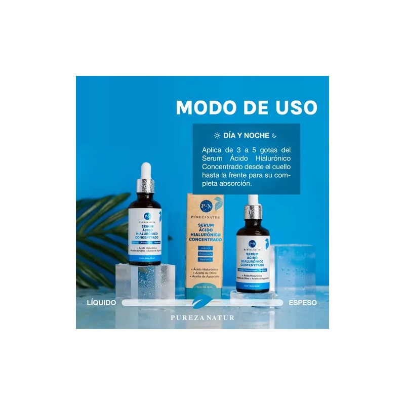 PIEL JOVEN E HIDRATADA: El Serum Ácido Hialurónico Concentrado está pensado para aquellas pieles que quieren darle hidratación profunda a su rostro. Sus activos como el ácido hialurónico (hyaluronic Acid), te ayudan a hidratar la piel, sin cerrar los poros ni obstruirlos, hacerla más elástica para evitar arrugas y líneas de expresión y evitar la resequedad causada por la pérdida de humedad. Siendo por excelencia el mejor hidratante para la piel.