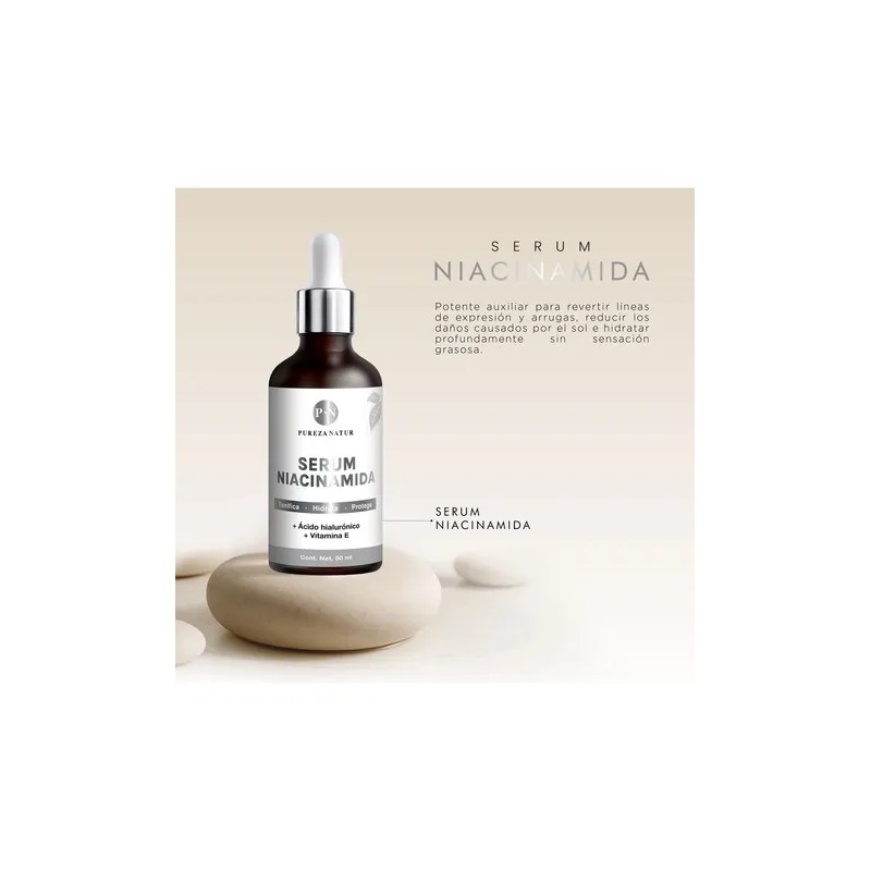 Pureza Natur Serum Niacinamida B3 + Vitamina E y Ácido Hialurónico | Suero Facial que unifica el tono e hidratante noche y día Todo tipo de piel 50ml