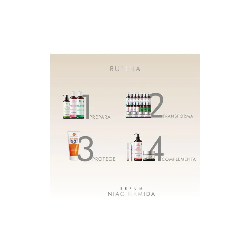 SERUM FULL SKIN BARRIER: Este serum de Niacinamida, también conocida como vitamina B3, es un producto completo para todo tipo de piel, incluso las más sensibles. Al aplicarlo, notarás efectos antiinflamatorios, disminución del enrojecimiento, reducción de líneas de expresión, mejora en la textura de la piel, reducción de la secreción de sebo, sanación del tejido cutáneo, disminución de manchas y poros, y minimización de imperfecciones.