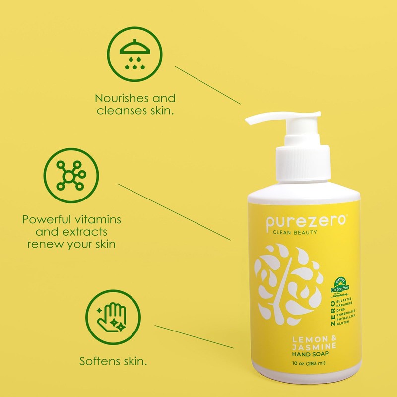 Purezero Lemon & Jasmine Hand Soap Refreshing Citrus Scent, Moisturizing & Sulfate-Free, Vegan Liquid Hand Wash, Formulated Without Parabens, Cruelty-Free, 10 ounces (1 Pack)