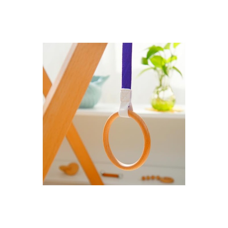 - SAFE DESIGN: Smooth wooden ring construction paired with a durable Purple fabric strap that's perfect for little hands to hold