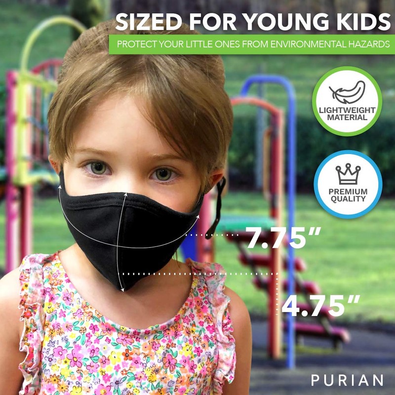 Purian Black Kids Face Masks, Washable Reusable Adjustable, Fits Kids to Teens (5 Masks)