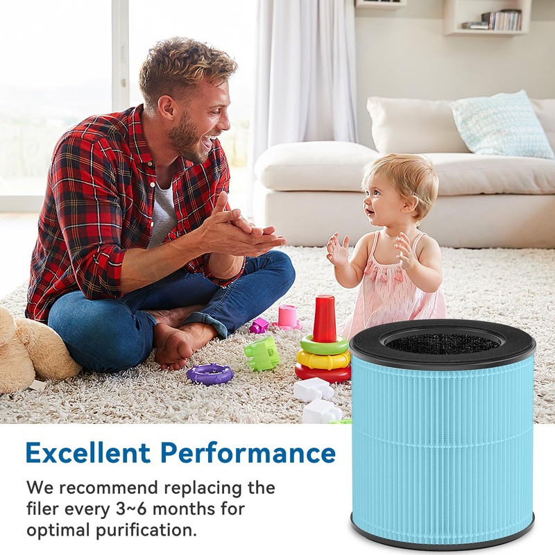 - Mejor aire, mejor vida: el filtro de repuesto cuenta con sistema de filtración 3 en 1: el prefiltro, el filtro HEPA verdadero H13 y el sistema de filtración de carbón funcionan juntos para purificar el 99.99% de las partículas de 0.3 micras del polvo, polen, PM 2.5, caspa de mascotas, humo, olor a cocina, cabello y olor. Mejora eficazmente la calidad del aire interior y crea un ambiente saludable.