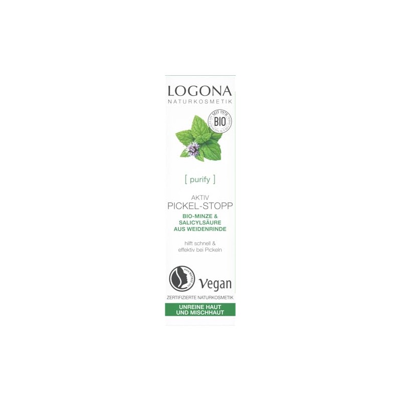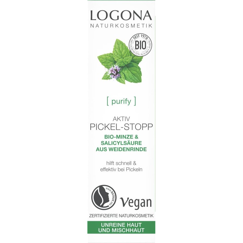 Verarbeitung: Der LOGONA Aktiv Pickel-Stopp bietet schnelle Hilfe bei Pickeln. Das klare Gel mit Bio-Minze und natürlicher Salicylsäure aus Weidenrinde wirkt antibakteriell und bekämpft gezielt Pickel.Verarbeitung/Zubereitung: Bei Bedarf mehrmals täglich dünn auf die betroffenen Hautstellen auftragen. Kontakt mit Schleimhäuten und Augen vermeiden. Zertifizierung/en * NATRUE