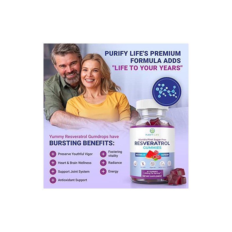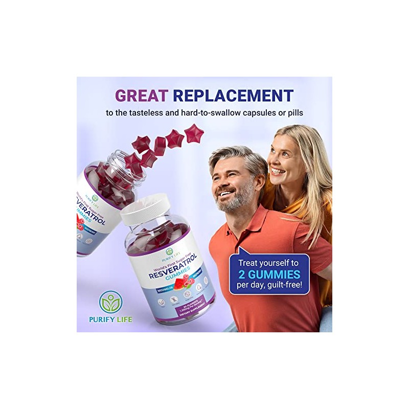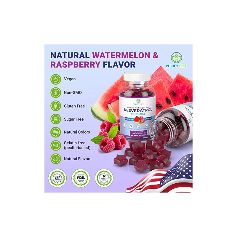 🌟 ⭐ Purify Life Gomitas De Resveratrol Sin Azúcar: Potente Suplemento De Resveratrol De 1500 Mg Para Favorecer La Salud Digestiva E Inmunológica: Suplemento Para El Apoyo Antioxidante, La Regeneración Y L ⭐ 🌟