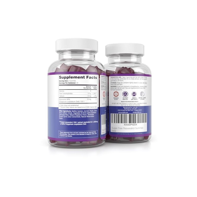 Purify Life Gomitas De Resveratrol Sin Azcar Potente Suplemento De Resveratrol De 1500 Mg Para Favorecer La Salud Digestiva E Inmunolgica Suplemento