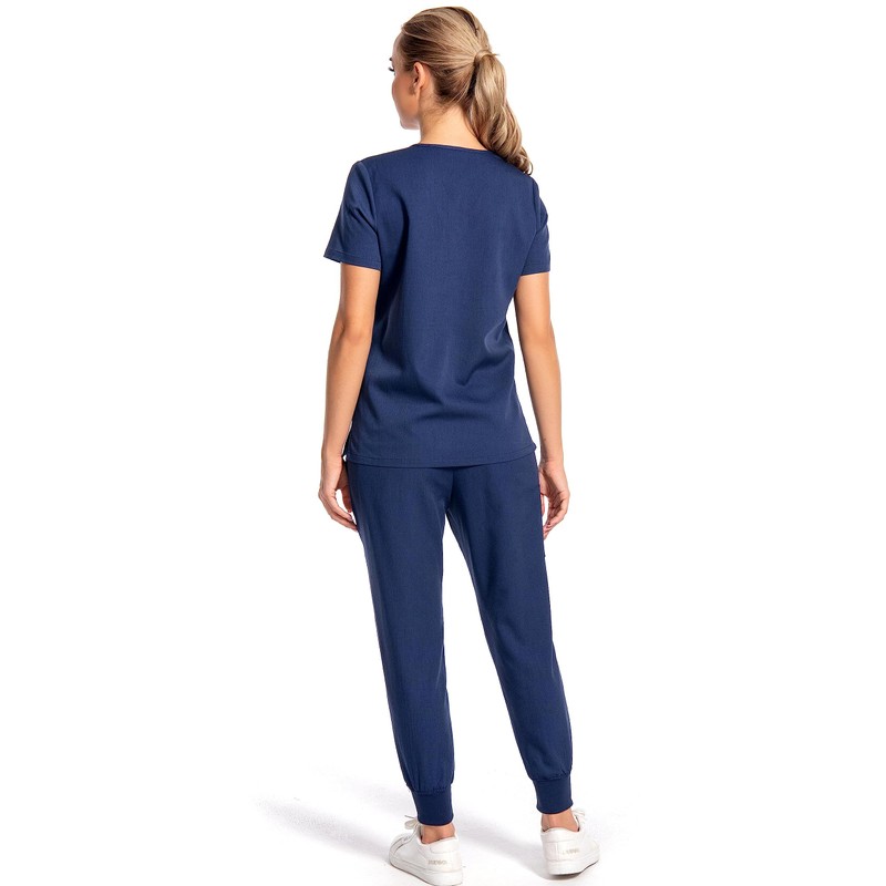 PuriPure Women's 4 Way Stretch V-Neck Scrub Top & Jogger Pant with 6 Pockets - Navy, Small