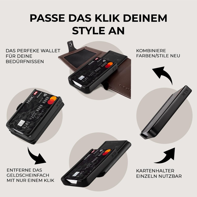 - Quick card selection – the innovative credit card holder allows you to quickly slide the cards. No spring/lever mechanism that breaks. Quick access to the right card. Holds up to 14 cards