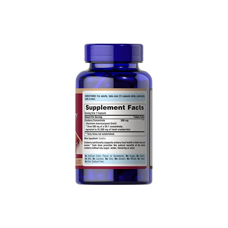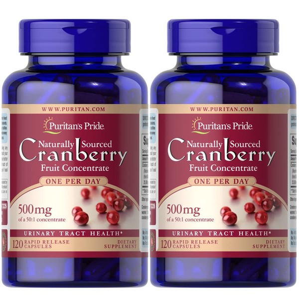 Puritan's Pride Naturally Sourced Cranberry One Per Day Fruit Concentrate 500mg, 50:1 Dietary Supplement for Urinary Tract Support, 4 Month Supply, 120 Rapid Release Capsules, 2 Pack