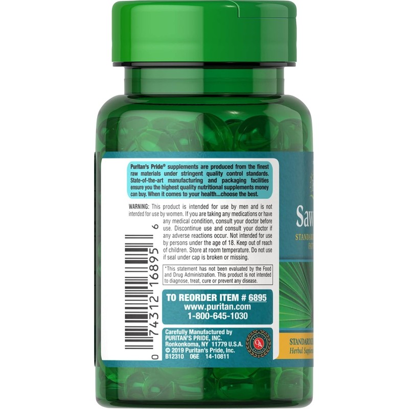 Puritan's Pride Saw Palmetto Standardized Extract 160 mg Softgels, 60 Count(Pack of 1)