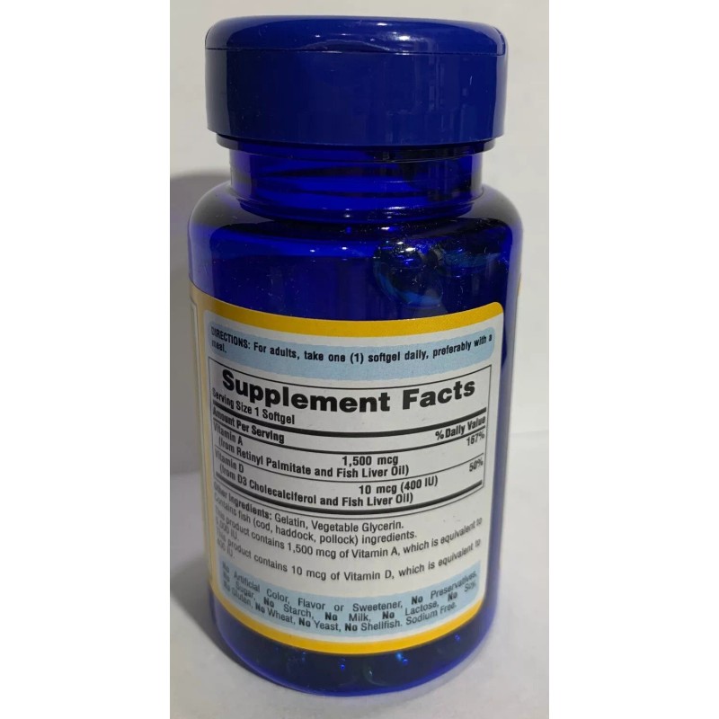 Puritan's Pride Vitamins A & D3 from Fish Liver Oils, 100 Rapid Release Softgels