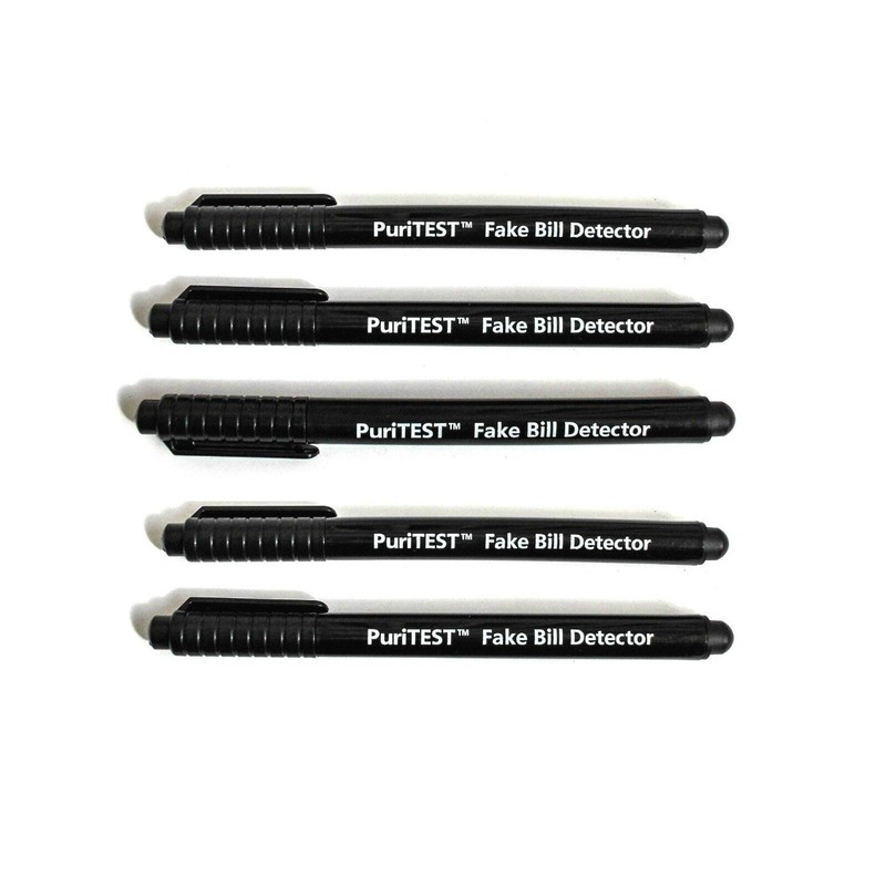 PuriTEST 5 Pack Counterfeit Money Detector Pen Marker Fake Dollar Bill Curren...