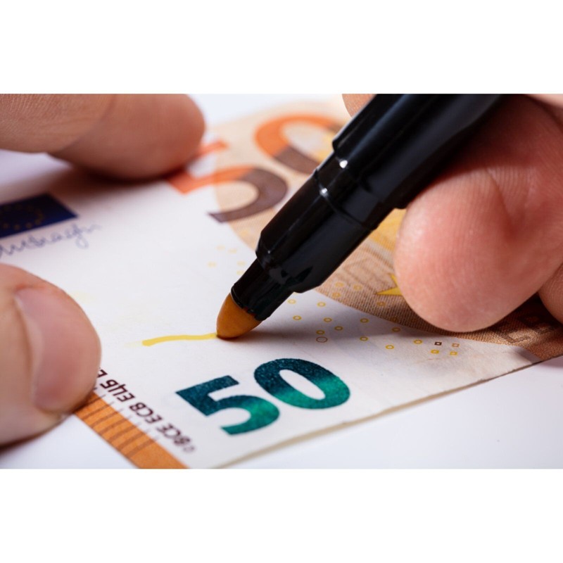 • Easy to Use: Simply swipe the pen across the bill. If the mark turns dark brown or black, the bill is counterfeit.