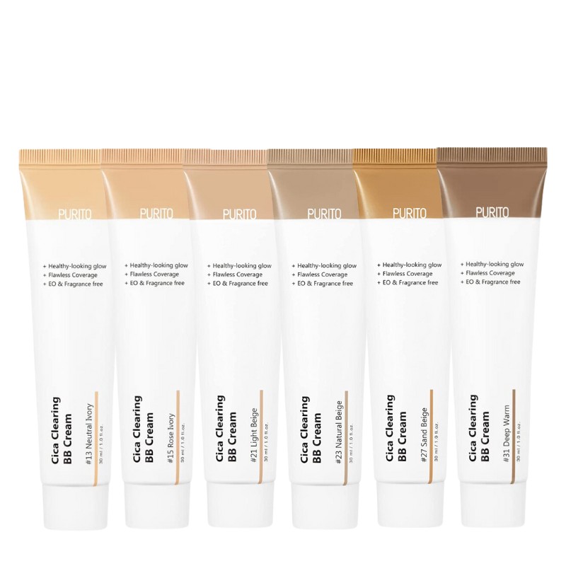 🌸 PURITO CICA Clearing BB Cream is a lightweight BB cream that provides a silky smooth finish to the skin. This BB cream offers medium coverage, leaving skin looking fresh, soft, and healthy.