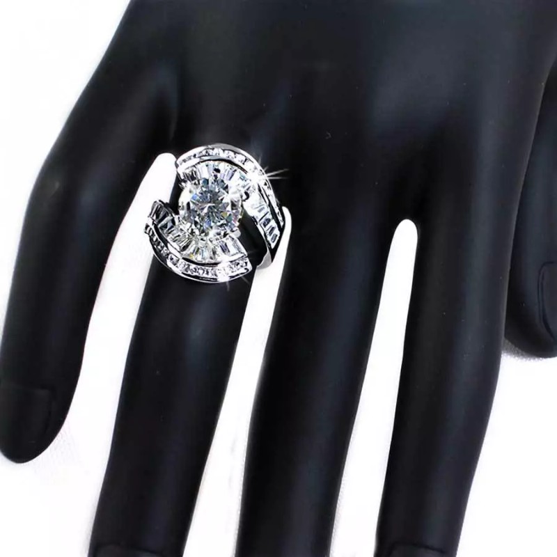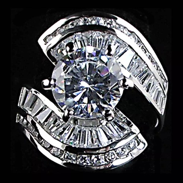 Beautiful and Graceful --- Brilliant Clear CZ Ring with flowing channel set Baguettes and Brilliant round CZs....Absolutely GORGEOUS! We also have this ring in YELLOW & CLEAR. * VERY VERSATILE * This ring looks Great on the index finger, middle finger and ring finger. A very elegant and graceful design. Looks so good it's impossible to distinguish between these and real ones costing thousands of dollars.