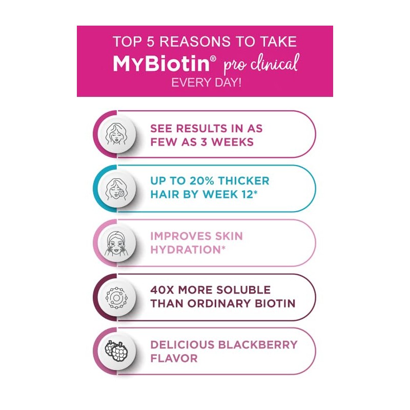 - THICKER HAIR IN AS FEW AS 3 WEEKS: Clinical testing shows that MyBiotin ProClinical Gummies increases hair density after 3 weeks of daily use — and by week 12 you can see up to 20% thicker hair.*