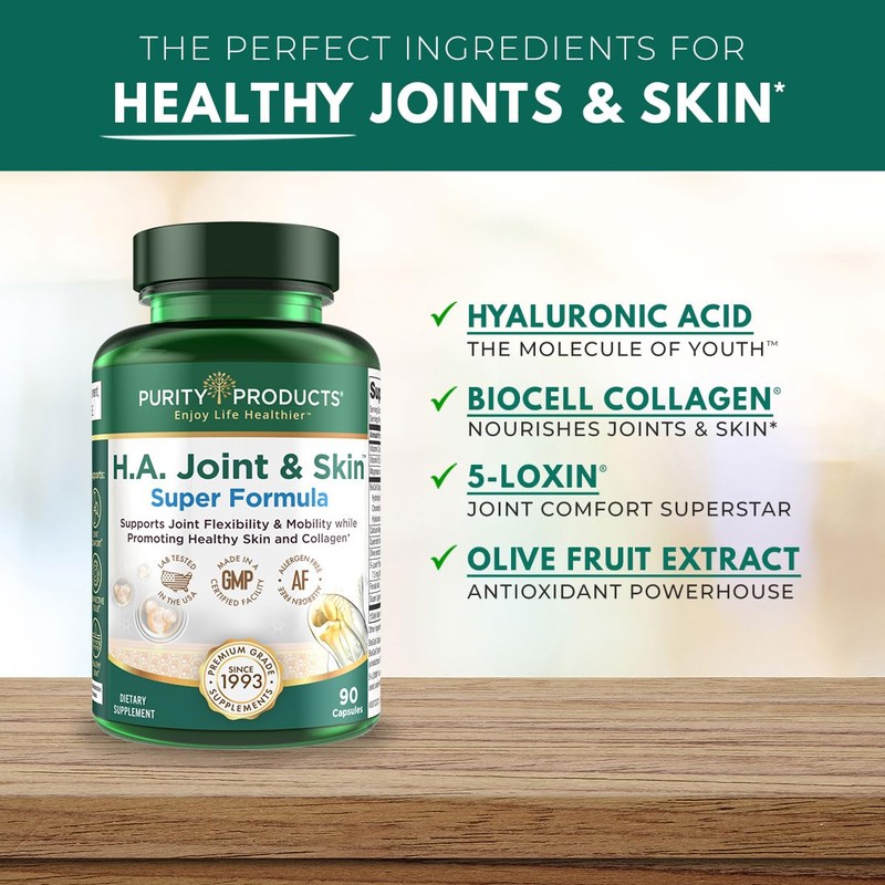 Purity Products Purity Products H.A. Joint and Skin Super Formula Biocell Collagen w/Hyaluronic Acid Supports Healthy Joint Flexibility, Healthy Synovial Fluid, and Joint Lubrication - 5-Loxin - 90 Capsules (1)
