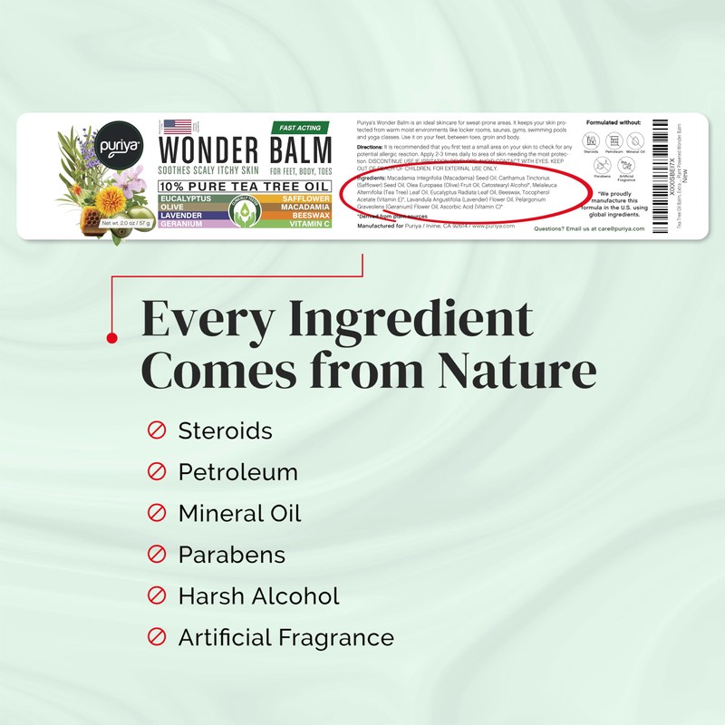 - Stay Put Formulation Safeguards Skin For Active Lifestyles: Puriya Wonder Balm is uniquely formulated with beeswax that shields skin from irritants (ones that cause itchy feet, groin discomfort, and ring-shaped rashes) lurking in moist areas, such as gyms, showers, saunas, locker rooms, and swimming pools. Wonder Balm forms a barrier between surfaces and your skin no matter how active you are or how humid the environment
