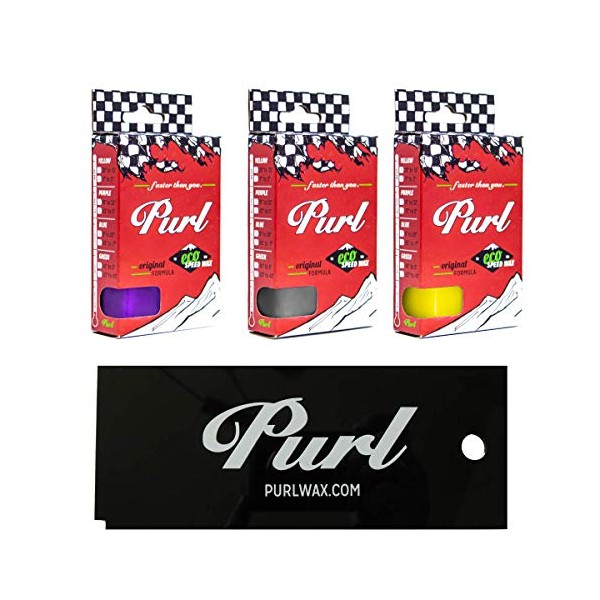 PURL Ski and Snowboard Wax Variety Pack Spring 3 Pack with Scraper